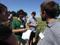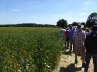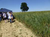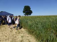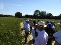 walking the crop trials, welsh landrace Hen Gymro S70 in front, our Miller's Choice long straw winter wheat population behind