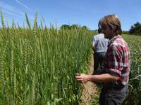 review Cornwall late June, Resparveth Farm, Orange Devon Blue Rough Chaff long straw landrace heritage wheat - 2:15pm 25th Jun. '18
