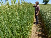 review Cornwall late June, Resparveth Farm, Orange Devon Blue Rough Chaff long straw landrace heritage wheat - 2:07pm 25th Jun. '18