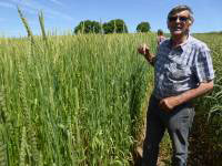review Cornwall late June, Resparveth Farm, Orange Devon Blue Rough Chaff long straw landrace heritage wheat - 2:08pm 25th Jun. '18