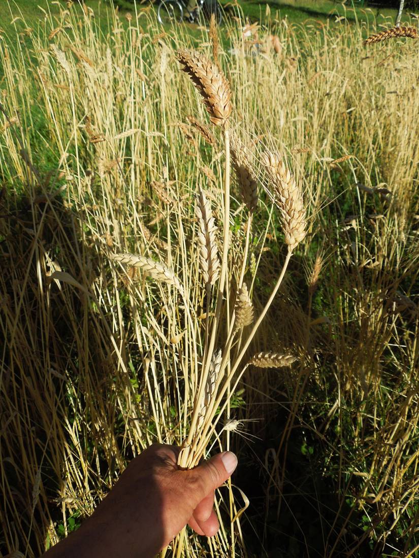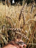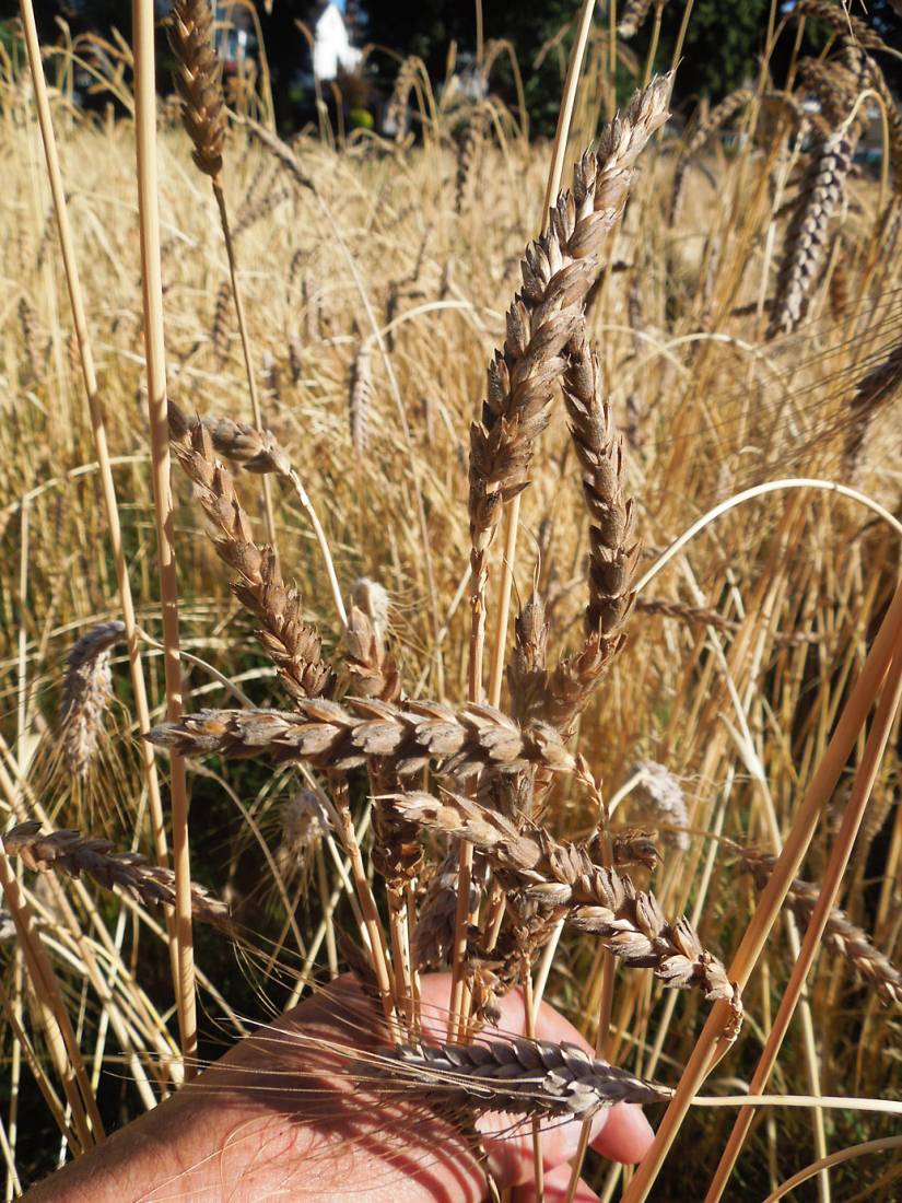 poor area of purple naked spelt, pre-harvest review, Ruskin Park - 5:37pm 7th Aug. '16