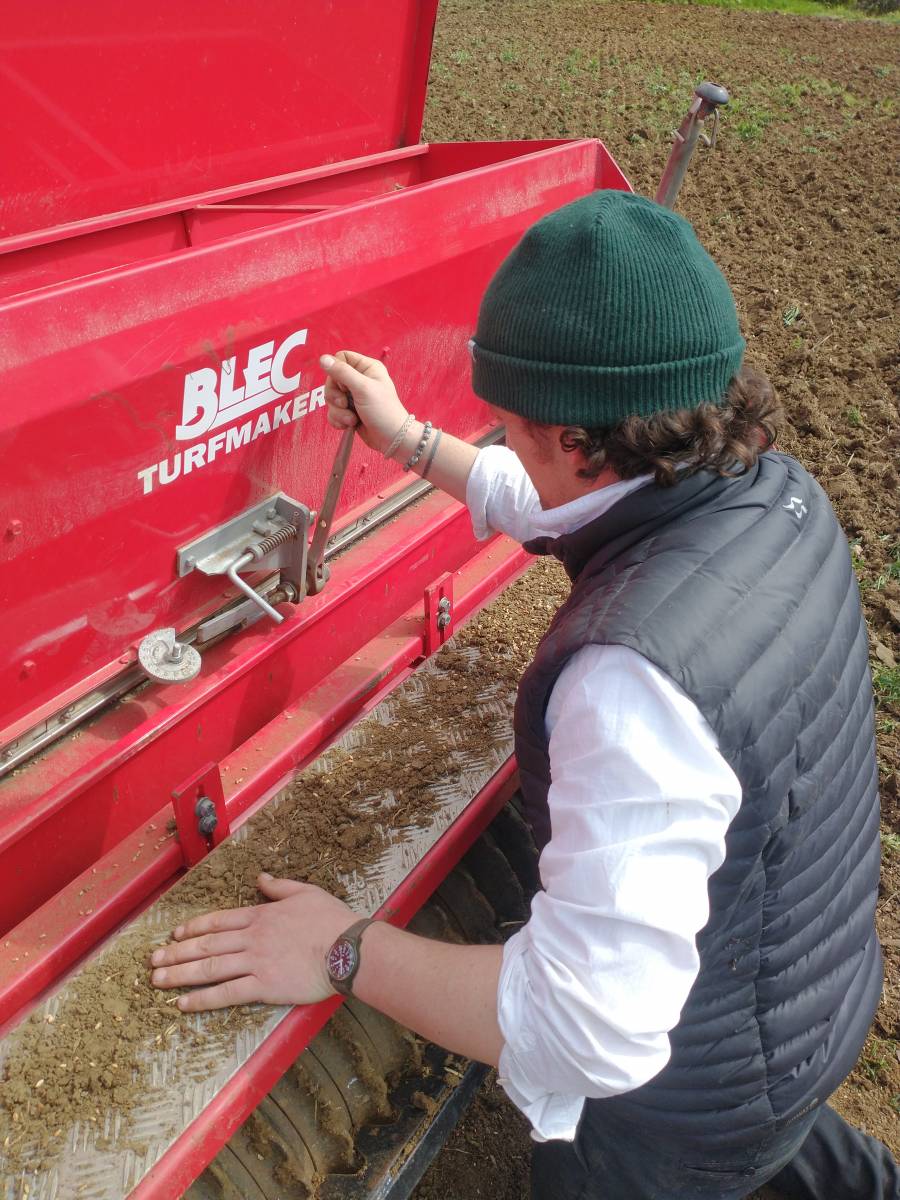 sowing Spring wheat trial plots and visiting mill room on